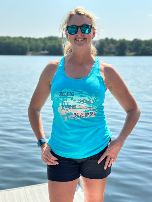 Sun Boat Fish Happy Racerback Tank Top